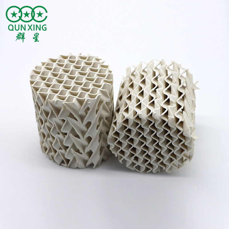 4.陶瓷孔板波紋填料金屬、塑料波紋填料具有優(yōu)良的技術(shù)經(jīng)濟(jì)性能,但對(duì)于高溫(~500℃)和腐蝕性介質(zhì)的蒸餾、吸收等分離,顯然不能勝任。而陶瓷孔板波紋填料不J具有波紋填料優(yōu)良的綜合性能外,還具有陶瓷的耐酸、堿腐蝕性和良好的表面潤濕性能,又耐高溫和低溫,適用于較強(qiáng)腐蝕性物系的物料分離。陶瓷的造價(jià)也比較便宜。匯總起來,陶瓷孔板波紋填料的主要適用范圍是: